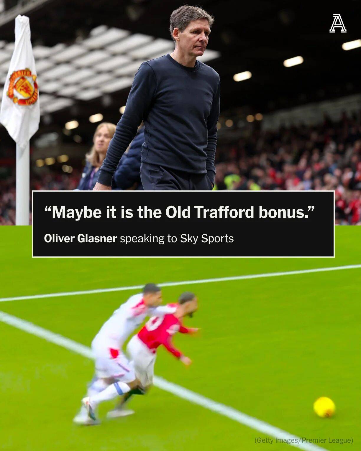 当再次被问及这一判罚时,格拉斯纳说:「我们和第四官员进行了沟通,他们说看了这么久VAR是需要确认是否越位,犯规从哪里开始,以及是否应该出示红牌。有几个不同的场景需要判断。但感觉最后判罚还是错误的。这不是点球,或许应该因为禁区外的犯规而出示红牌,但犯规确实是在禁区外发生的。这可能有点像老特拉福德球场的主场哨。」